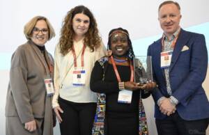 left to right: Patricia Brunner (IAPA), Karina Volff (Apairagent),Winner Jemimah Mwithiga, Enda Kelleher, SPRINTAX- sponsor of the Award evening